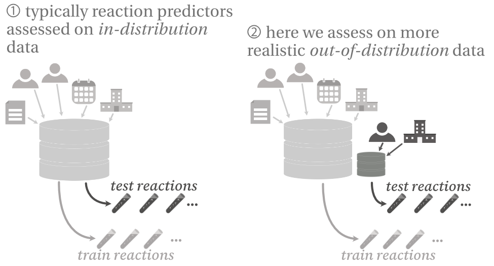 Despite excellent benchmark performance, ML models for reaction prediction can still struggle on real-world data—we evaluate these limitations by challenging a model on different out-of-distribution tasks.