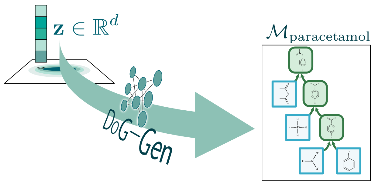 When designing a new molecule, you not only want to know what to make, but, critically, how to make it! We propose a deep generative model for molecules (Molecule Chef) that provides this information, by first constructing a set of reactants before reacting them together to form a final molecule.